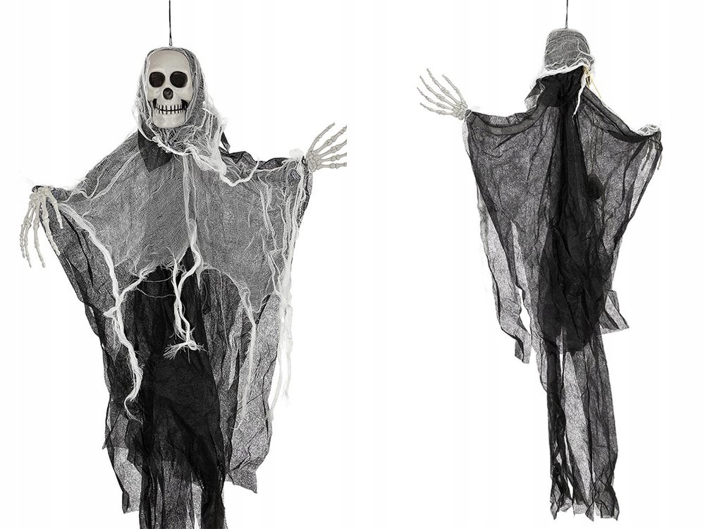 Dekorace je vysoká 80 cm, díky čemuž je skvěle viditelná, ale zároveň snadno pověsitelná na různá místa. Je vyrobena z lehkého materiálu, který jemně vlaje ve větru a vytváří tak mimořádný vizuální efekt. Dokonalá dekorace, která dodá vašim hostům vzrušení z hrůzy.