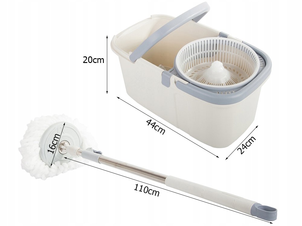 Oblíbený rotační mop s prodlouženou tyčí, celková délka tyče 110 cm, mop Mop je vhodný pro všechny druhy tvrdých podlah, odjištěním tyče a jednoduchým pohybem rukojeti nahoru a dolů mop vymácháte i vyždímáte bez předklánění a namáčení rukou, set obsahuje kbelík, prodlouženou tyč a hlavici z mikrovlákna,