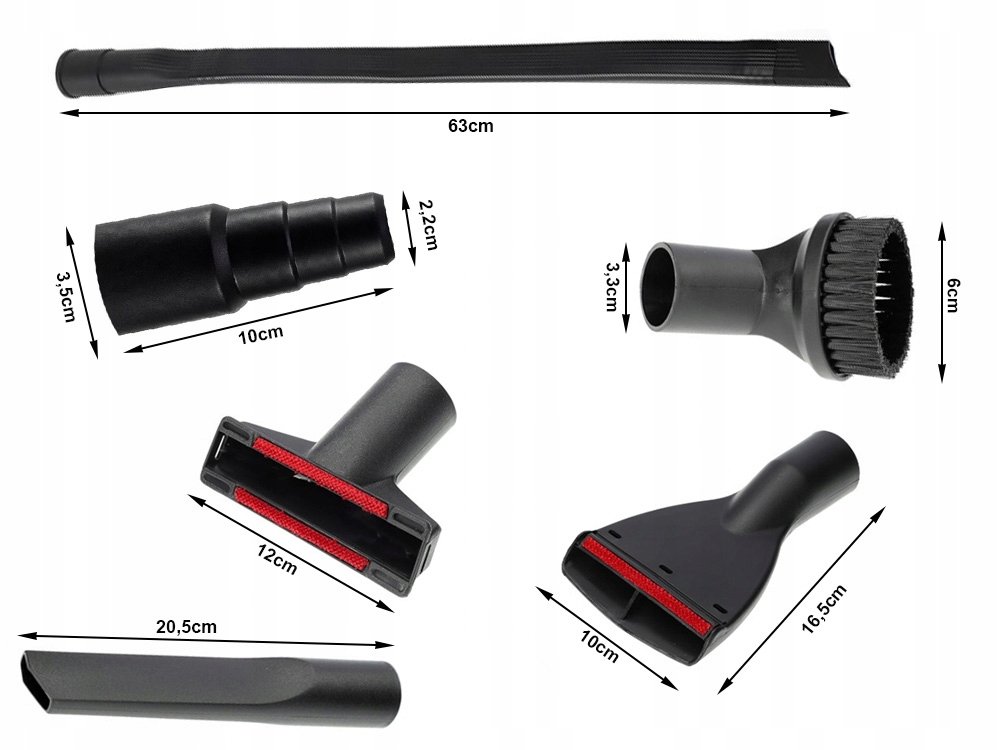 Kompletní sada koncovek vysavače s adaptérem - dokonalé nástroje, díky kterým bude váš úklid všestrannější a efektivnější! Tato sada byla vytvořena s ohledem na maximální využitelnost, aby splnila všechny vaše domácí potřeby na úklid.