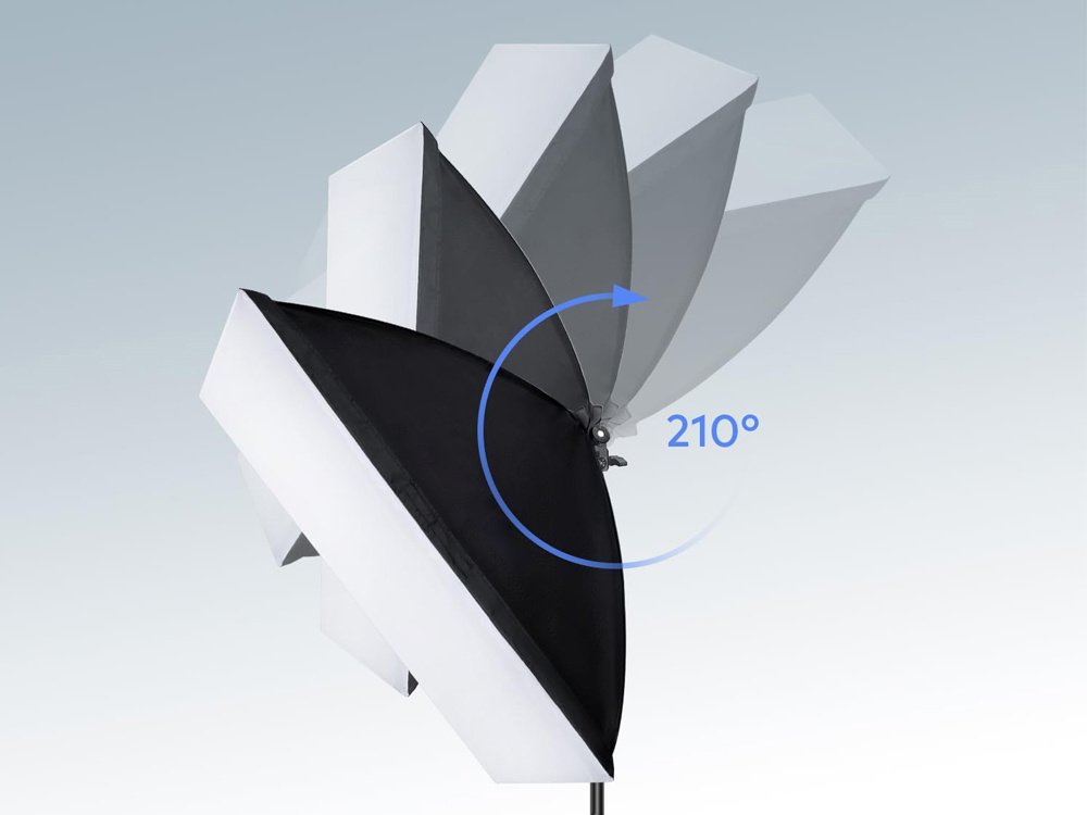 Možnost nastavení úhlu osvětlení softboxu ve dvou rovinách - vertikálně a horizontálně.