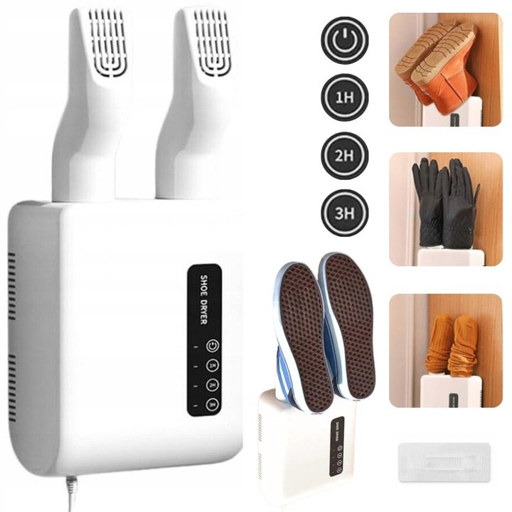 Tento nástěnný sušič bot je praktické zařízení, které účinně odstraňuje vlhkost, zápach a bakterie z obuvi. Jeho kompaktní design se snadnou montáží pomocí lepidla umožňuje jeho umístění kamkoli – například do chodby, skříně, koupelny nebo vstupního prostoru. Je ideální pro sušení sportovní, běžné, dětské nebo turistické obuvi.