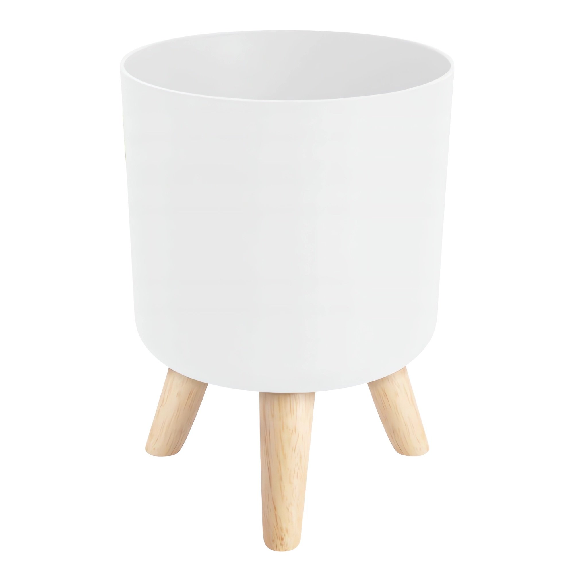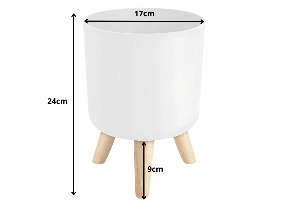 Bílý květináč o průměru 170 mm na dřevěných nožičkách je vynikající volbou pro lidi, kteří si cení estetiky a funkčnosti. Jeho minimalistický design se hodí do moderního i klasického interiéru.