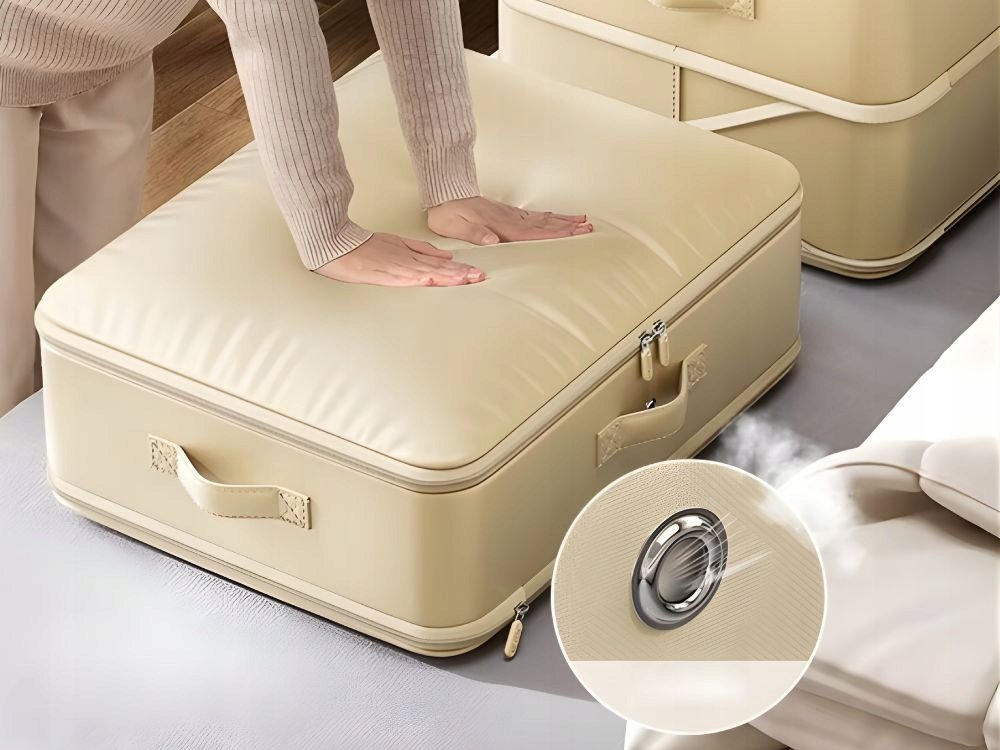 Největší výhodou tohoto vaku je jeho schopnost vyfouknout se, čímž se výrazně snižuje objem uložených předmětů. To znamená, že i velmi velké a nadýchané textilie, jako jsou deky nebo zimní bundy, zabírají výrazně méně místa.