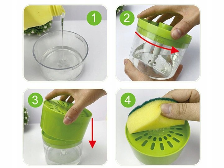 Dokonalý pomocník pro mytí nádobí vpodobě dávkovače saponátu. Dávkovač saponátu zaručí, že už nebudete mít saponát rozlitý všude okolo dřezu. Dávkovač saponátu je inteligentně navržen a nadávkuje vám ideální množství saponátu přímo do houbičky. Stačí do dávkovače nalít oblíbený saponát a houbičkou několikrát stlačit vrchní část.