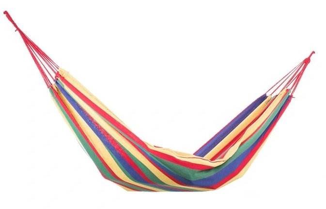 Závěsné lůžko je zhotoveno z pevné látky (hrubá bavlna s příměsí polyesteru), podobně jako hrubě splétané provazy.