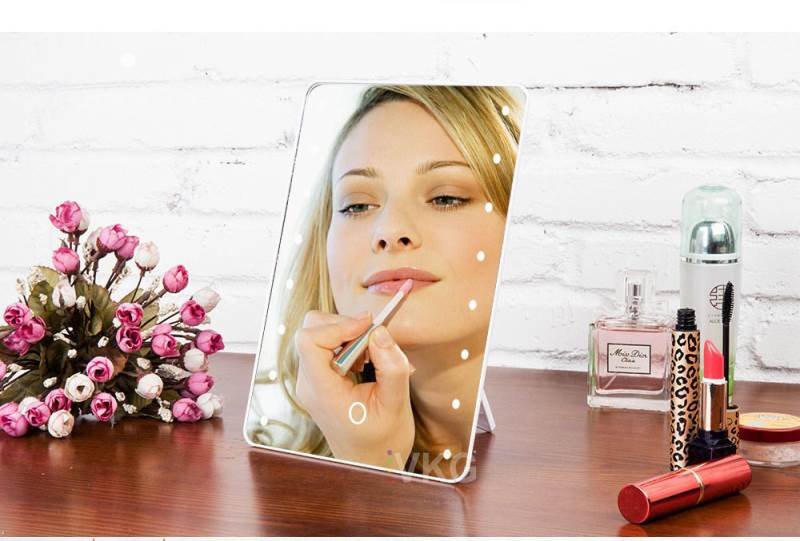 Podsvícené kosmetické zrcátko s 16 LED diodami.