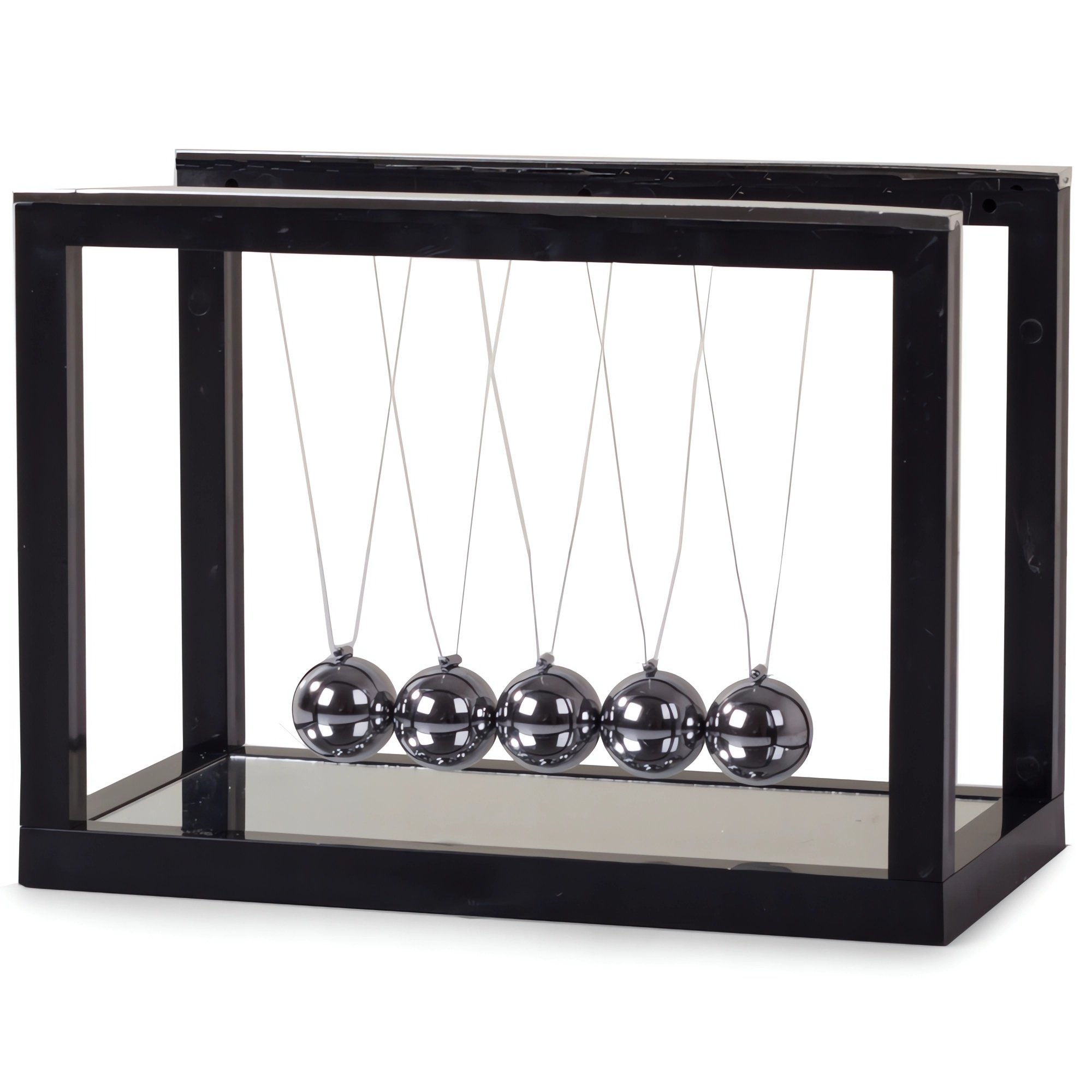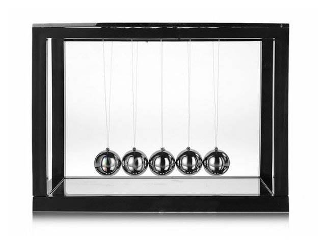 Už ze stresu nevíte kudy kam a nejraději byste se na všechno vykašlali? Odpočiňte si a odreagujte se! Jednoduše pomocí nějakého delšího předmětu, například pravítka, rozkývejte všechny kuličky naráz v příčném směru a dívejte se! Kyvadlo funguje na principu Newtonovy houpačky, ale narozdíl od ní se nepohybuje jen po jedné čáře, ale vytváří krásný efekt vlny. A ještě k tomu si představte rytmický zvuk 5 kovových kuliček, který Vás okamžitě uklidní a Vy se budete opět moct v klidu pustit do práce!