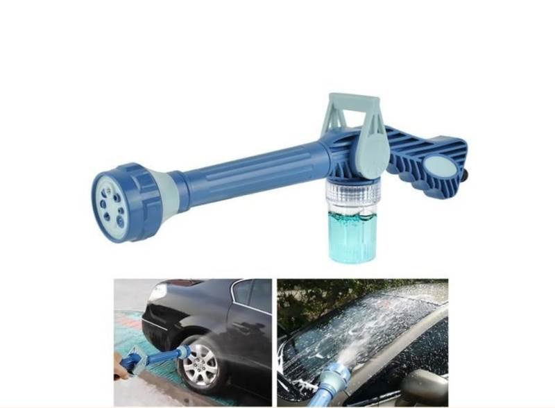 Tato unikátní tlaková pistole kombinuje výhody a sílu vysokotlakových čistících přístrojů s pohodlností a dostupností zahradních hadic. Pistoli lze snadno připevnit k jakékoliv zahradní hadici a vytvořit si tak snadno a jednoduše tlakový čistící přístroj na bázi wapky. Vodní trysku je možné nastavit na 8 různých módů, které zahrnují silný tlak, mlhovač, sprchu nebo různé úhly střiku a další. Naprosto unikátní je pak vestavěný dávkovač mýdla, použitelný pro všechny typy tekutých mýdel, čisticích prostředků či vosků. Jednoduché ovládání v podobě páčky Vám umožní podle potřeby buď dávkovat saponát, vytvořit pěnu či dávkovač zcela vypnout a používat pouze vodní tlak.